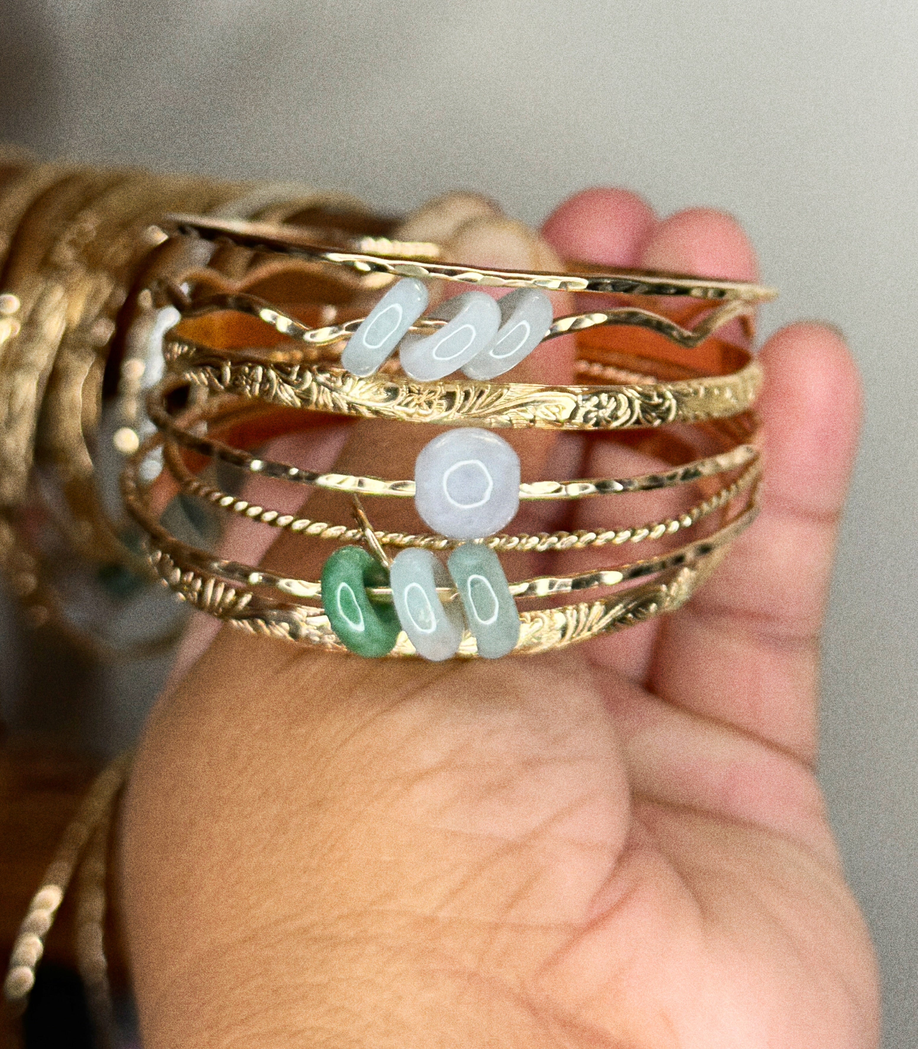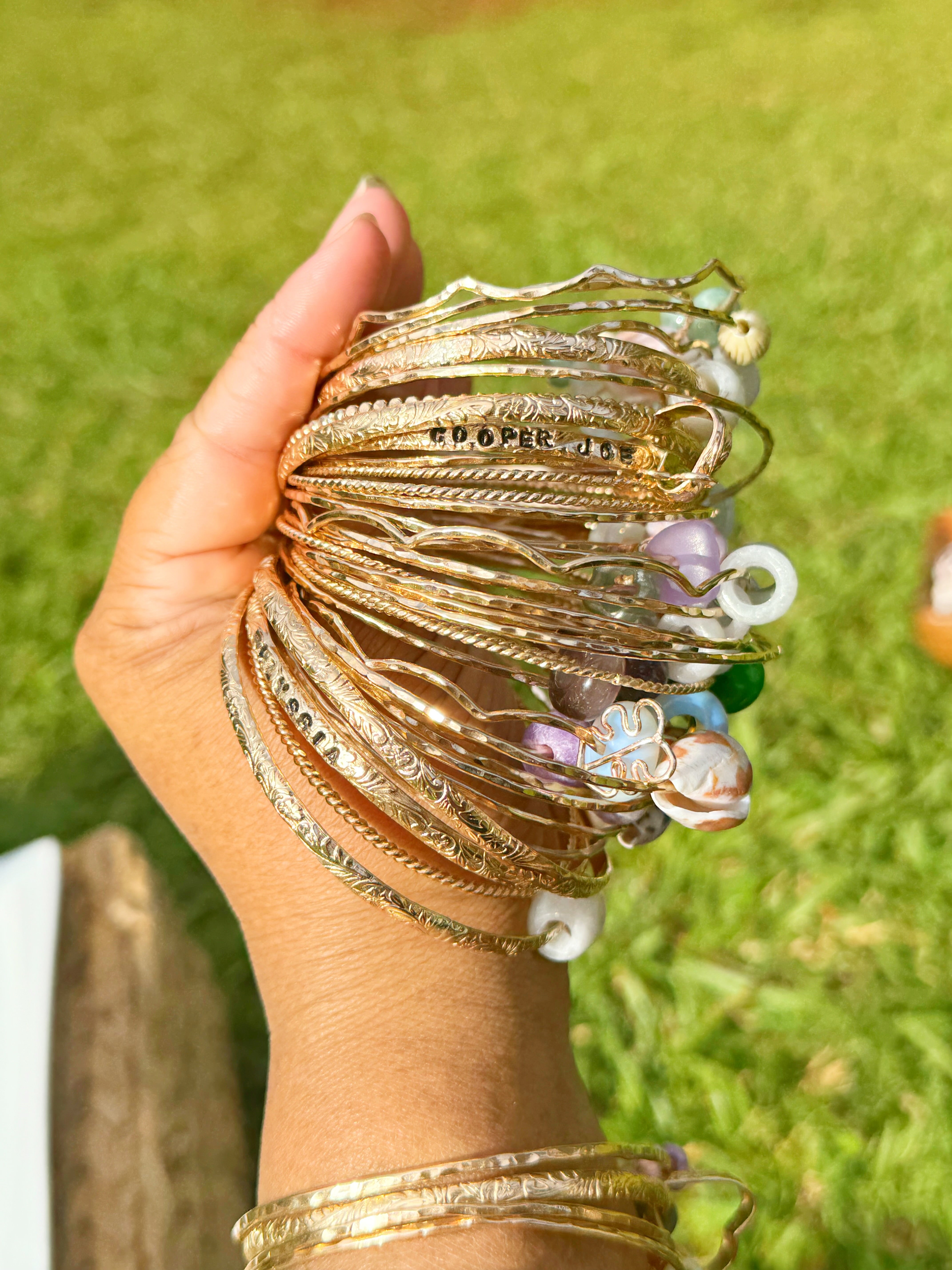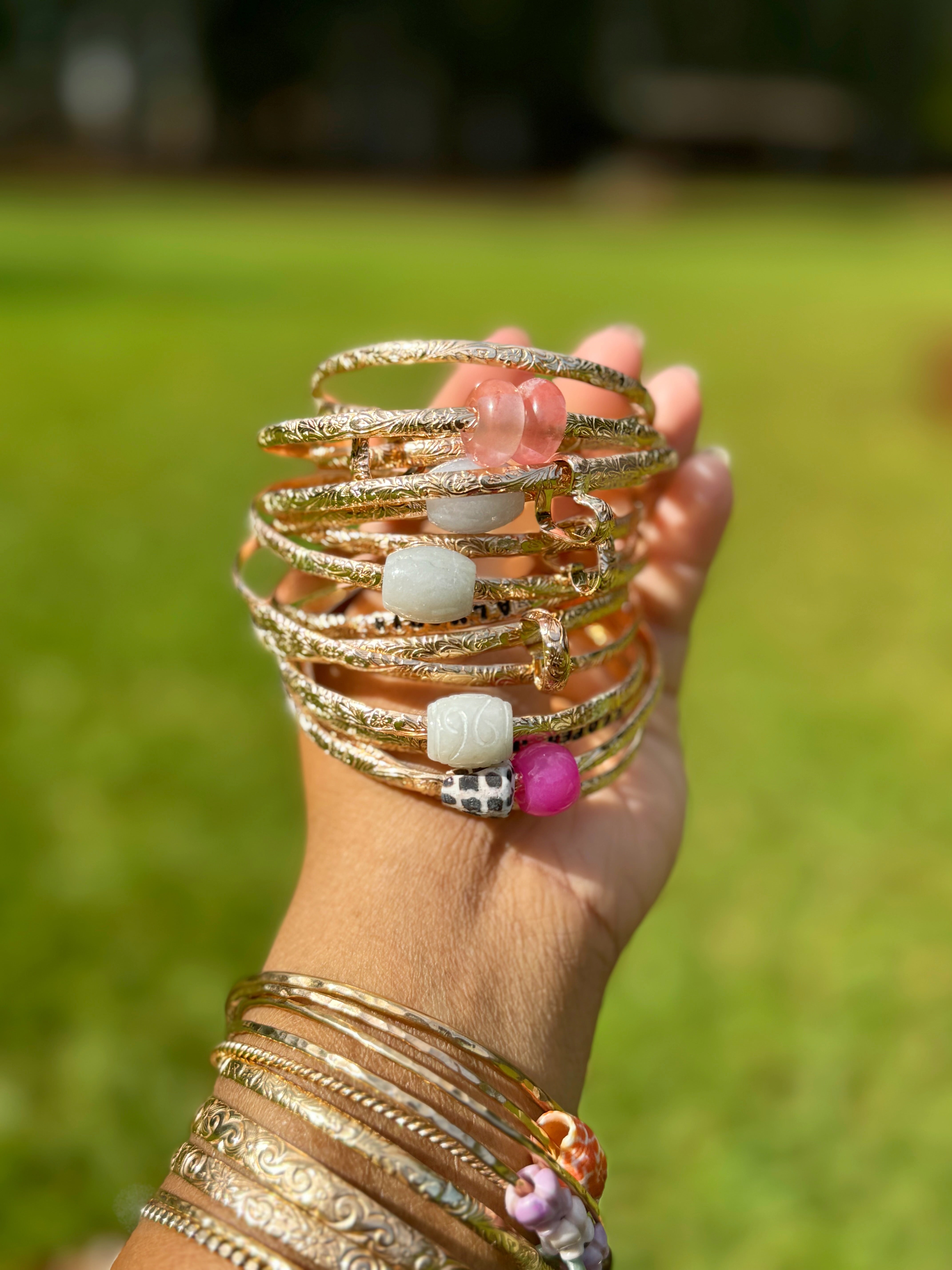 At banglesbyjoii, we take pride in offering high-quality 14k gold filled jewelry that is water resistant and tarnish free. Our carefully crafted designs, such as the Heirloom Bangle and the Heirloom Stamped Jade donut bangle, are not only timeless treasures but also enduring accessories that can be passed down through generations.